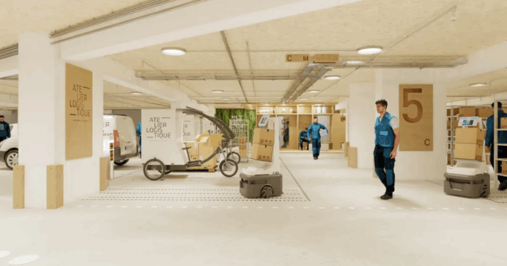 Brands will be able to store, sort, and deliver merchandise via electric vehicles or cargo bikes within 15–30 minutes. The project includes 108,000 square feet of storage and robots developed with a French defense contractor. Deliveries will move through separate docks on Rue de Ponthieu and Rue de La Boétie, enabling night operations by small, 12-ton trucks that unload within 20 minutes.
